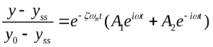 Если 0<ζ<1, то корни характеристического уравнения являются комплексными и сопряженными. Формулы этих корней удобно переписать в следующем виде