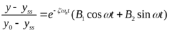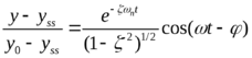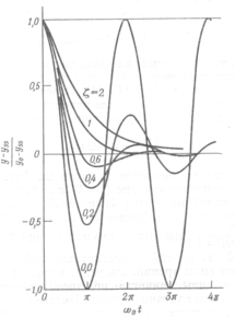 Очевидно, что выражение (11) описывает гармоническое колебание с угловой частотой ω и с убывающей по экспоненте огибающей с постоянной времени 1/ζωn..