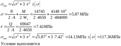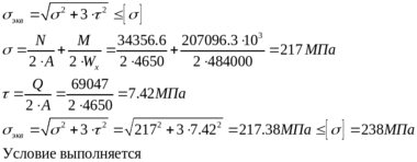 Опасное сечение в месте соединения балки и стержня. Это сечение соответствует № 7 (Основной металл у конца флангового углового шва в нахлесточном соединении с фланговыми и лобовыми швами) в соответствие со СНИП (табл 32).