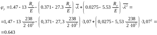 3) Расчет на устойчивость внецентренно-сжатых элементов постоянного сечения из плоскости действия момента при изгибе их в плоскости наибольшей жесткости совпадающей с плоскостью симметрии, следует выполнять по формуле