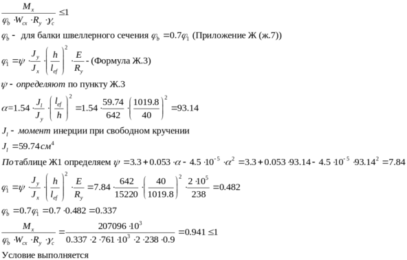 3) Расчет на общую устойчивость изгибаемых элементов сплошного сечения ( п. 8.4 по СНИП)