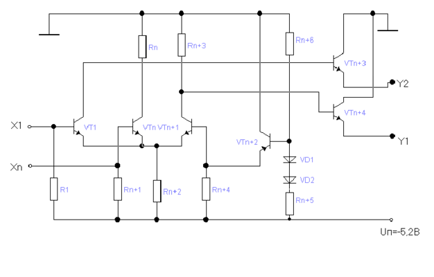 VTn+2,Rn+3 -эмиттерный повторитель биполярные транзисторы