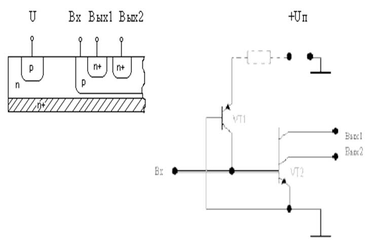 Срез топологии логики И2Л. Принципиальная электрическая схема логики И2Л.