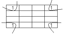 Карта Карно представляет собой прямоугольник, разбитый на квадраты, число которых равно общему числу наборов для данной функции n переменных, т.е. оно равно 2n.