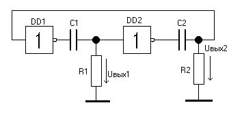 Рис 3.11 Схема автогенератора на основе двух инвертеров