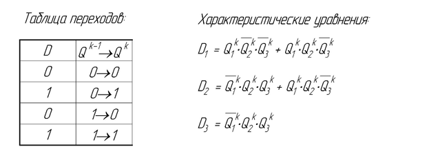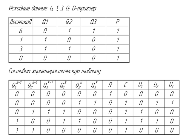 Построить таблицы последовательности вывыходных сигналов и решение задачи выбора необходимого количества триггеров.