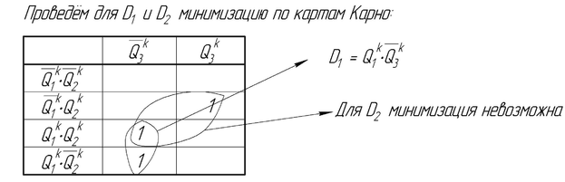 . построение таблицы переходов счётчика Qt Qt+1. Аргументами в таблице являются значения исходных сигналов Q3t, Q2t,