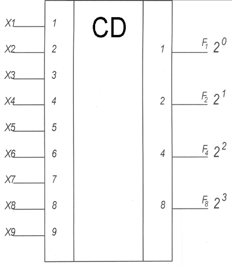 Составить логическую схему шифратора одноразрядных десятичных цифр. Составить таблицу истинности, уравнения выходных сигналов.