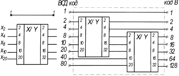 Составить логическую схему преобразования чисел от 0 до 9910 из двоично-десятичного кода (BCD) в двоичный (B)с использованием стандартной интегральной схемы кодопреобразователя.