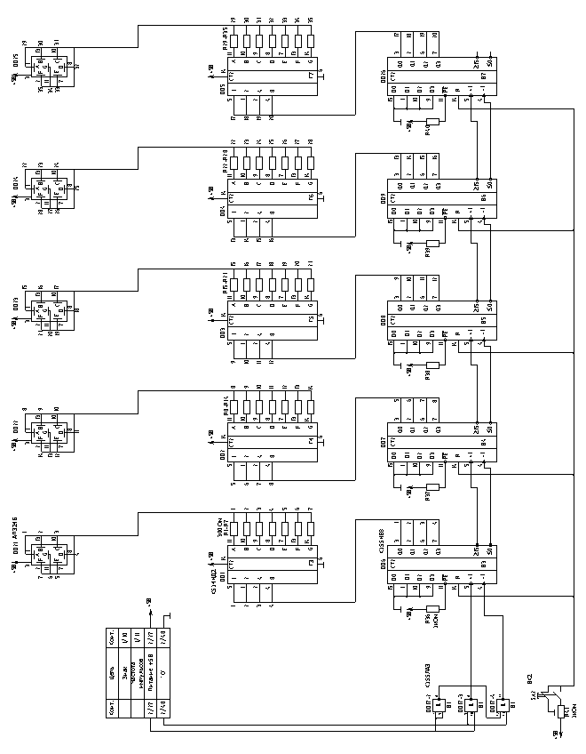 Микросхемы DD1–DD5 – дешифраторы двоичного кода в семисегментный код (К514 ИД2) – рис. 12.19.