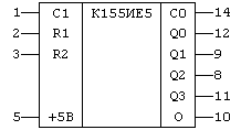 Рис. 12.18. Двоичный реверсивный счетчик К155 ИЕ6.