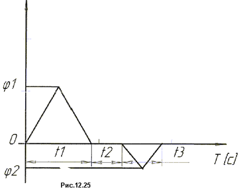 Ознакомиться с тахограммами ф = ф (t) привода (рис.12.25).