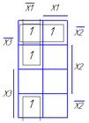 Карта Карно — Вейча, соответствующая таблице истинности, показана на рис. 2.