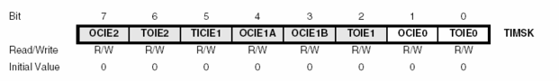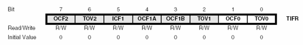 Помимо этого работоспособность ТС обеспечивают регистры TIFR и TIMSK (регистр запросов прерывания и регистр маскирования прерываний соответственно, находятся в области регистров ввода/вывода, которых всего 64).