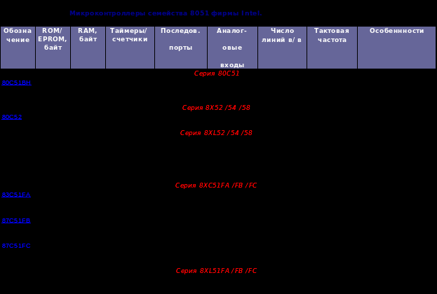 Семейство MCS-51 насчитывает около 200 модификаций, в т.ч. микросхемы повышенной производительности и контроллеры с чрезвычайно развитой периферией.