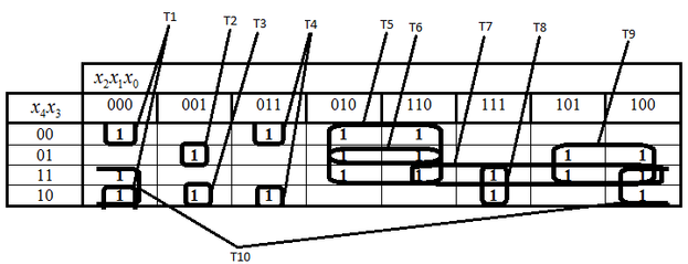 Карта Карно, соответствующая заданной функции Y приведена в таблице №1.