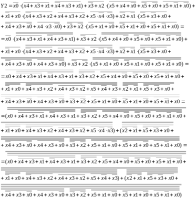 После выделения управляющих переменных для мультиплексоров 1-ого уровня, были получены следующие логические функции от четырех переменных, соответствующие входам мультиплексора 1-ого уровня мультиплексирования.