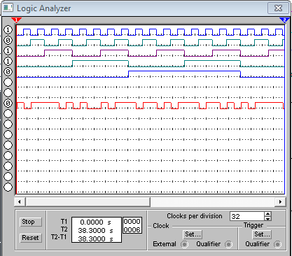 Для сравнения результатов работы схемы с таблицей истинности воспользуемся инструментом Logic Analyzer: