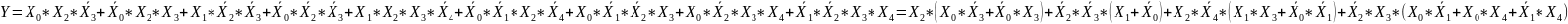 Произведем группировку слагаемых, чтобы избавиться от конъюнкции 4-х переменных: