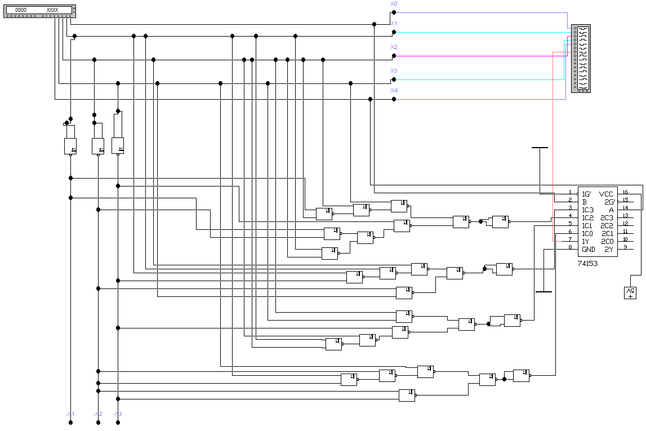 В качестве мультиплексора с 4-мя информационными входами оптимальным выбором будет микросхема К155КП2. Микросхема представляет собой сдвоенный селектор-мультиплексор 4-1 с общими входами выбора данных и раздельными входами стробирования.