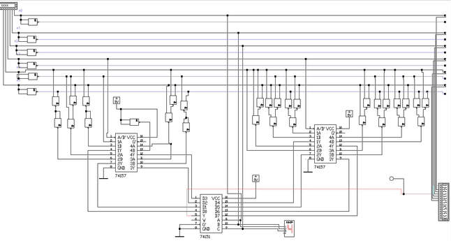 Функциональная схема разработанного цифрового управляющего устройства на основе мультиплексоров с 8-мью и 2-мя информационными входами и элементов Шеффера представлена на рисунке № 4.