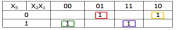 3.4.1 Таблица, устанавливающая соответствие информационных входов мультиплексора заданным управляющим переменным.