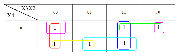 Соответствие информационных входов мультиплексоров 2-го уровня выбранным управляющим переменным: X4