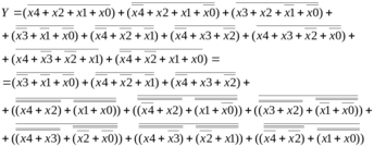 Теперь реализуем на базисе двух- и трехвходовых логических элементов Пирса логическую функцию, рассматривая в качестве ее аргументов элементарные конъюнкции