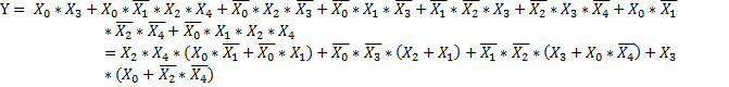 Произведем группировку слагаемых, чтобы избавиться от конъюнкции 4-х переменных: