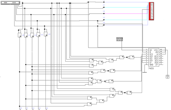 Функциональная схема разработанного цифрового управляющего устройства на основе мультиплексоров с 4-мя информационными входами и элементов Пирса представлена на рисунке № 2.