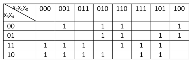 | X4 | X3 | X2 | X1 | X0 | N | 00 | 01 | 10 | 11 |