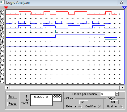 Для проверки корректности работы схемы воспользуемся инструментом Logic Analyzer: