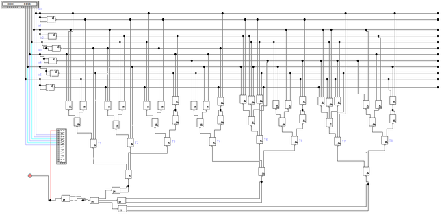 Далее полученные логические функции для 8 входов мультиплексора первого уровня реализуются на двухвходовых мультиплексорах второго уровня.