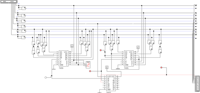 Функциональная схема разработанного цифрового управляющего устройства на основе мультиплексоров с 8-мью и 2-мя информационными входами и элементов Шеффера представлена на рисунке № 5.
