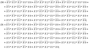 Для распределения сигналов по входам мультиплексора второго уровня также используются карты Карно соответствующих логических функций. Рассмотрим построение входных сигналов для мультиплексоров второго уровня.