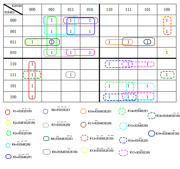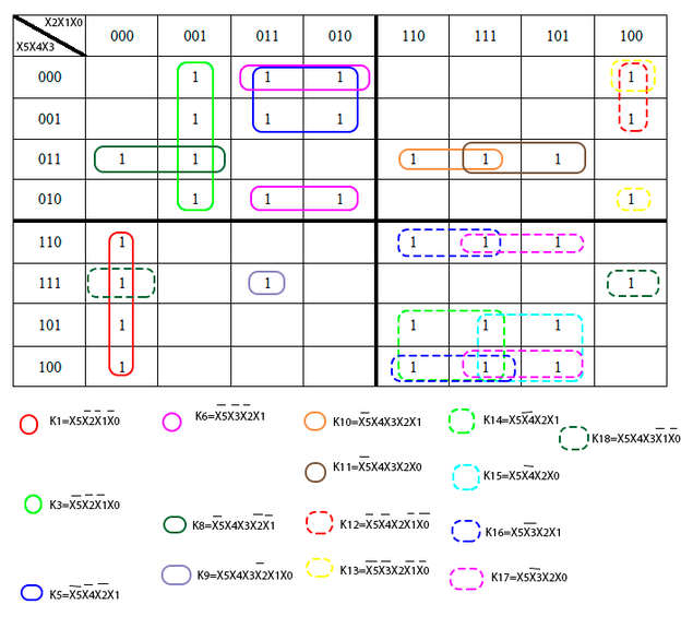 Соответствие информационных входов мультиплексора заданным управляющим переменным: X5X2X1