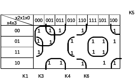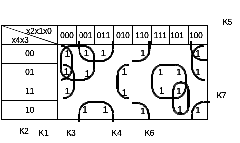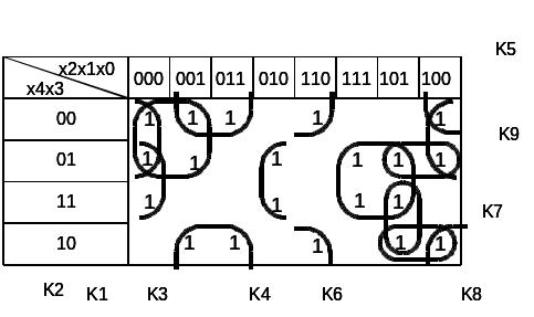 | X1, X0 X4, X3, Х2 | 00 | 01 | 11 | 10 |