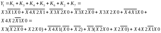 Для того, чтобы уменьшить количество логических элементов в схеме, упростим выражение минимальной ДНФ функции, группируя конъюнкции: