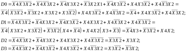 Входные логические функции для информационных входах мультиплексора строятся на основе карт Карно. Так, для входов D0-D3 получаем:
