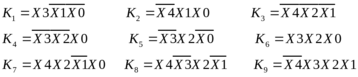 Присвоим каждой простой импликанте некоторое имя: т.е. обозначим их, например, как K1,K2,.. Km.