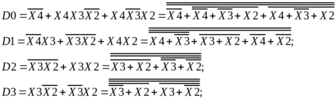 Проведём преобразование полученных логических выражений для информационных входов мультиплексора в базисе элементов Пирса: