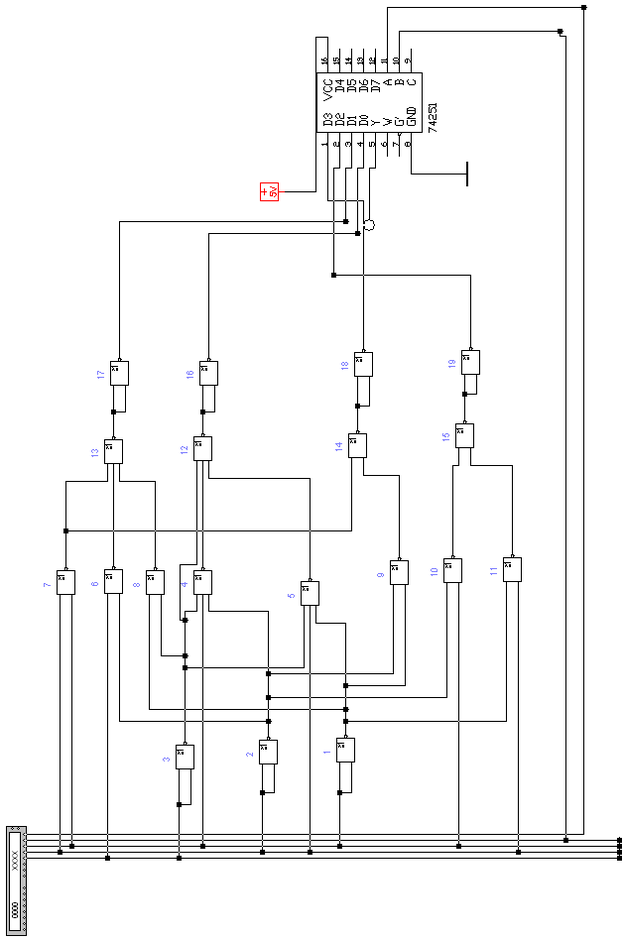 При построении схемы были использованы мультиплексор : КР155КП2.