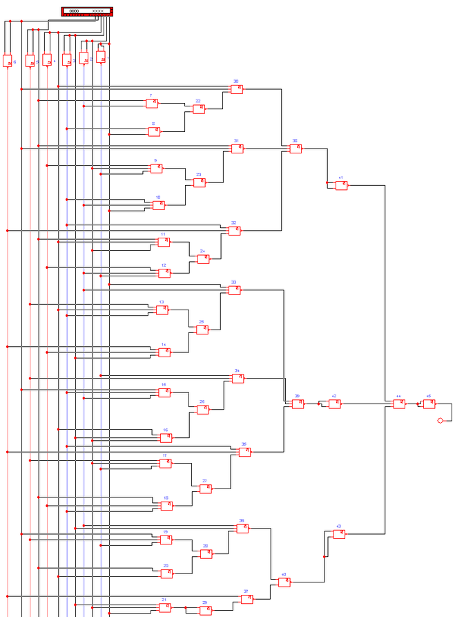 Значению этого выражения соответствует сигнал №50 на выходе схемы и группа элементов 38-45.