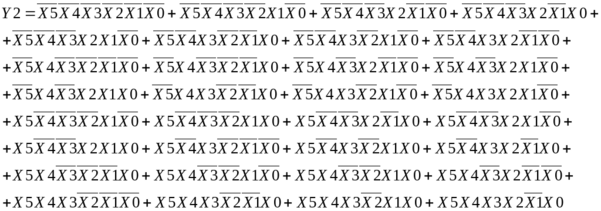 Для дальнейшего приведения функции в базис стрелка Пирса, будем суммировать все вышеописанные конъюнкции, обозначая их вышеприведенными порядковыми номерами. Тогда получим следующее выражение: