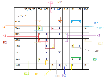 | X0, X2, X5 X1, X3, X4 | 000 | 001 | 011 | 010 | 110 | 111 | 101 | 100 | |
