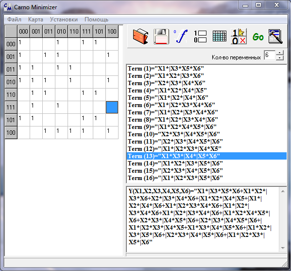 4. Разработать функциональную схему ЦУУ, заданного логической функцией от 6-ти переменных на основе мультиплексоров с 8-ю и 2-мя информационными входами и двухвходовых логических элементов Шеффера.(1-ый вариант)