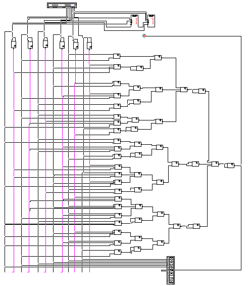 Далее полученные логические функции для 8 входов мультиплексора первого уровня реализуются на двухвходовых мультиплексорах второго уровня.