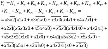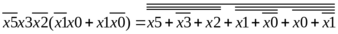 Для дальнейшего приведения функции в базис стрелка Пирса, будем суммировать все вышеописанные конъюнкции, обозначая их вышеприведенными порядковыми номерами. Тогда получим следующее выражение: