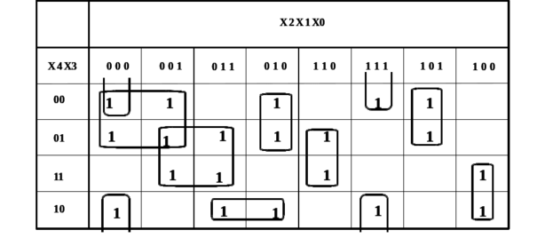 | X3, X2,X1 X4, X0 | 000 | 001 | 011 | 010 | 110 | 111 | 101 | 100 |