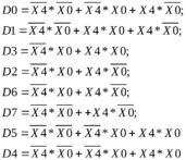 Входные логические функции для информационных входах мультиплексора строятся на основе карт Карно. Так, для входов D0-D7 получаем: